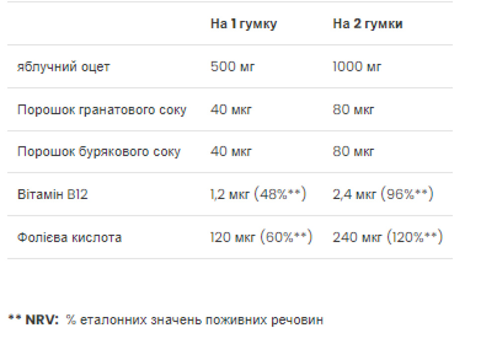 Жувальні цукерки з яблучним оцтом — це смачне, придатне для веганів натуральне джерело яблучного оцту, яке підтримує здорове травлення та імунну систему, а також підвищує енергію. Кожна порція (2 гумки) містить 1000 мг яблучного оцту та велику добову дозу вітаміну B12 і фолієвої кислоти.