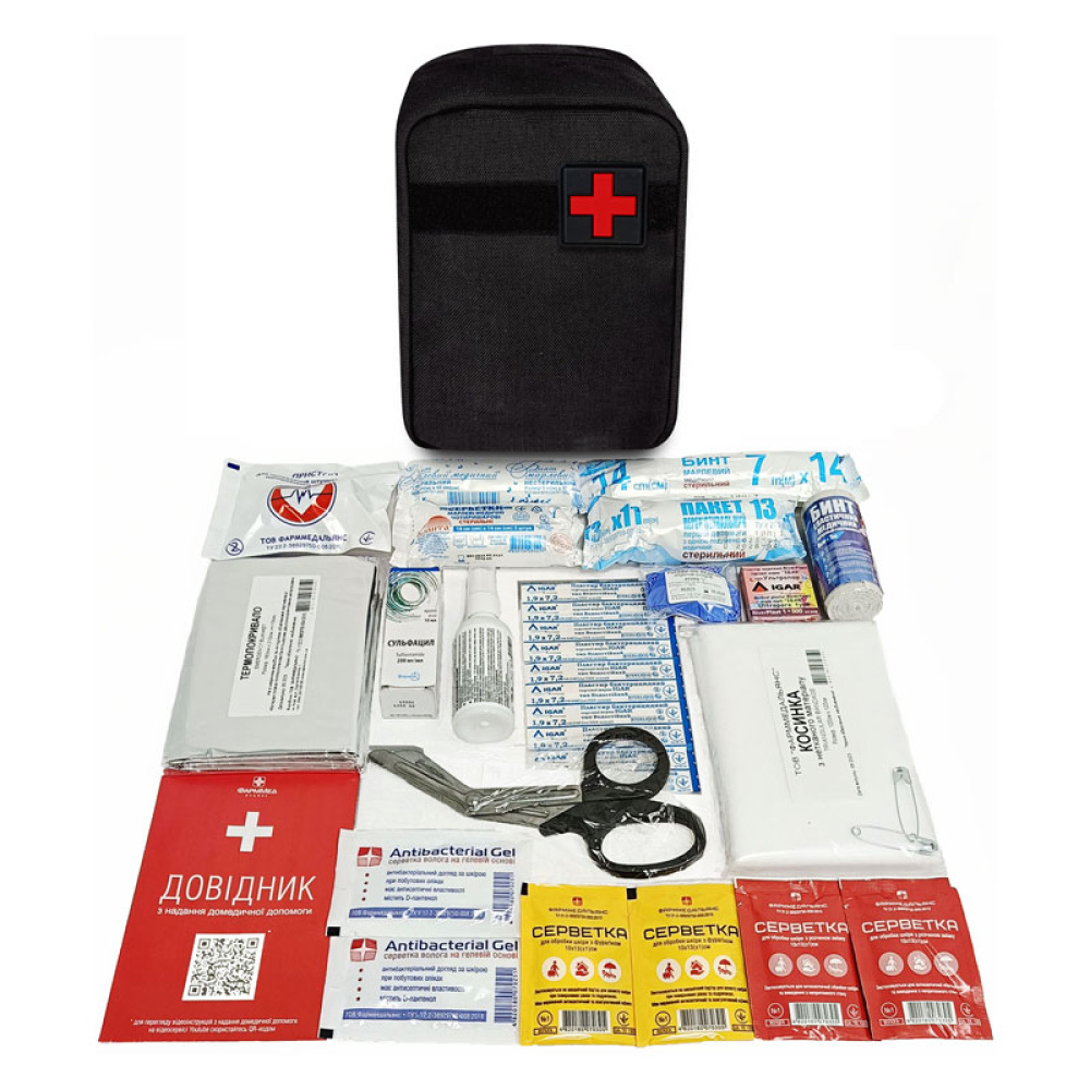 Примітка: аптечка постачається без шеврона. За вашим бажанням до замовлення може бути додано шеврон з позначенням аптечки (чорний з червоним хрестом).