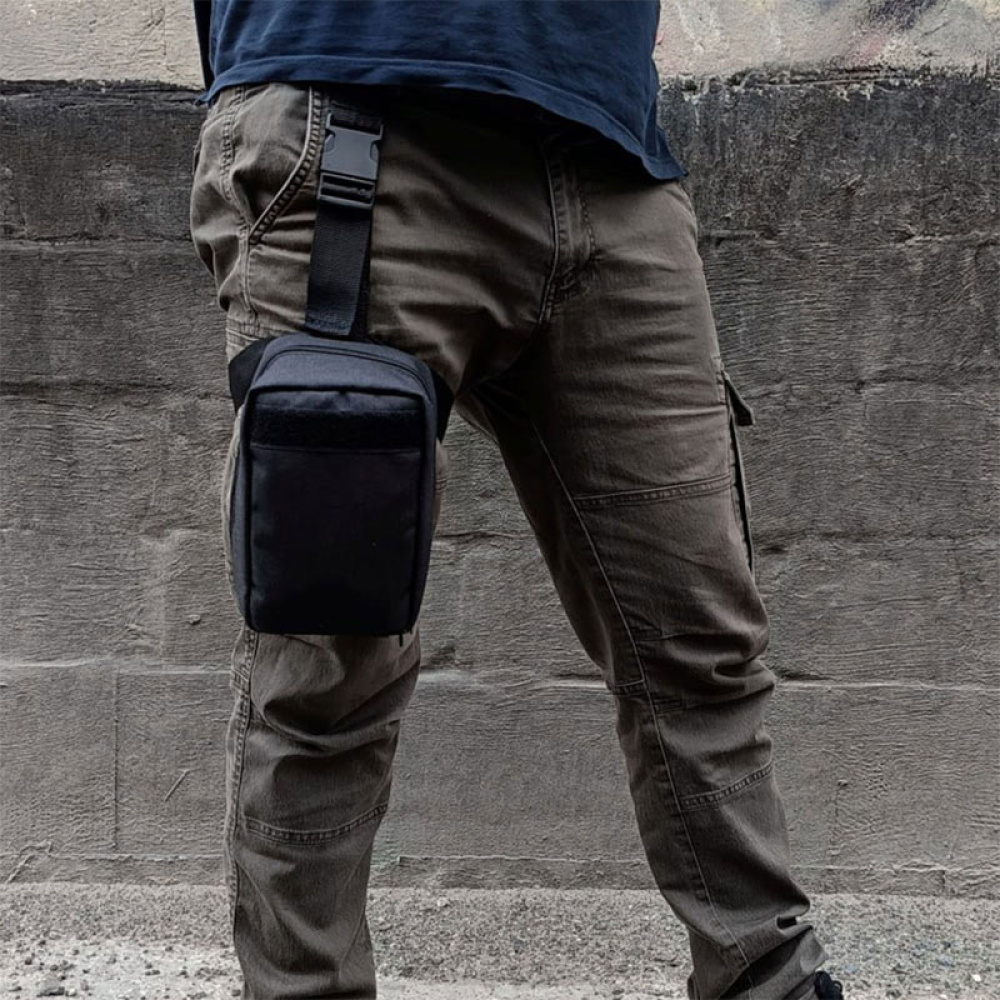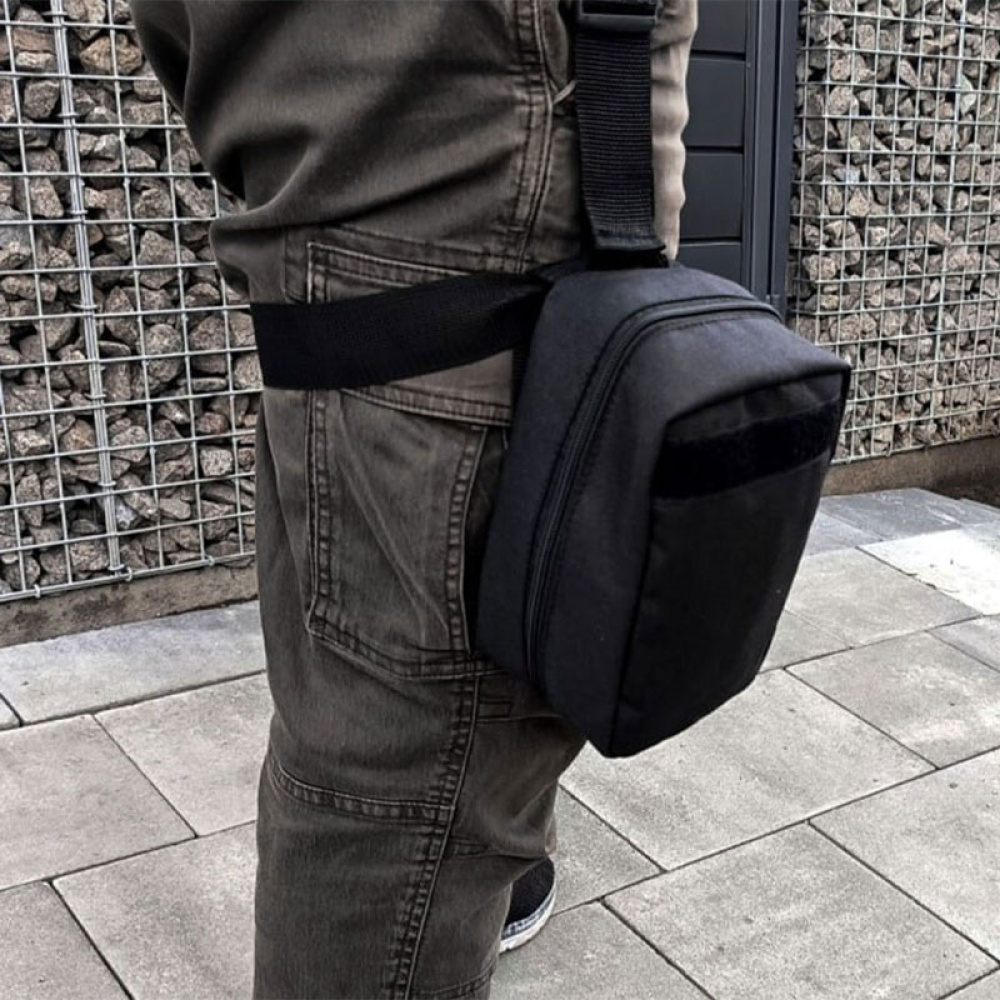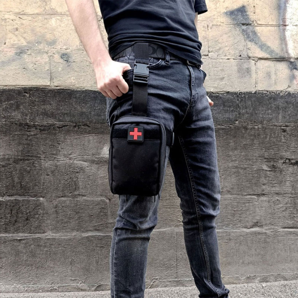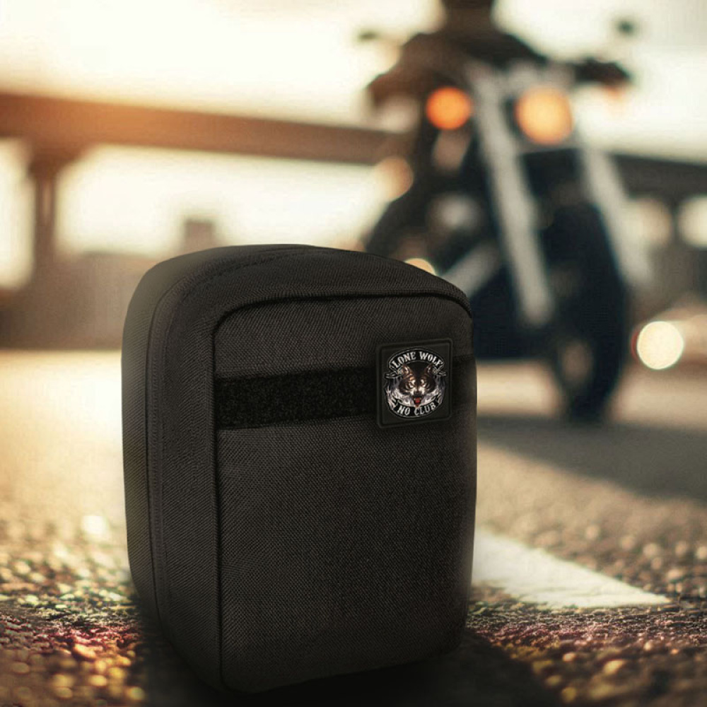 Набір постачається в підсумку військового типу, виготовленому з щільної тканини чорного кольору, зі спеціальним кріпленням MOLLE. Аптечку можна зручно закріпити на ремені або, за допомогою знімної стегнової системи кріплення, — на стегні. Завдяки цьому мотоцикліст самостійно обирає зручне розміщення.