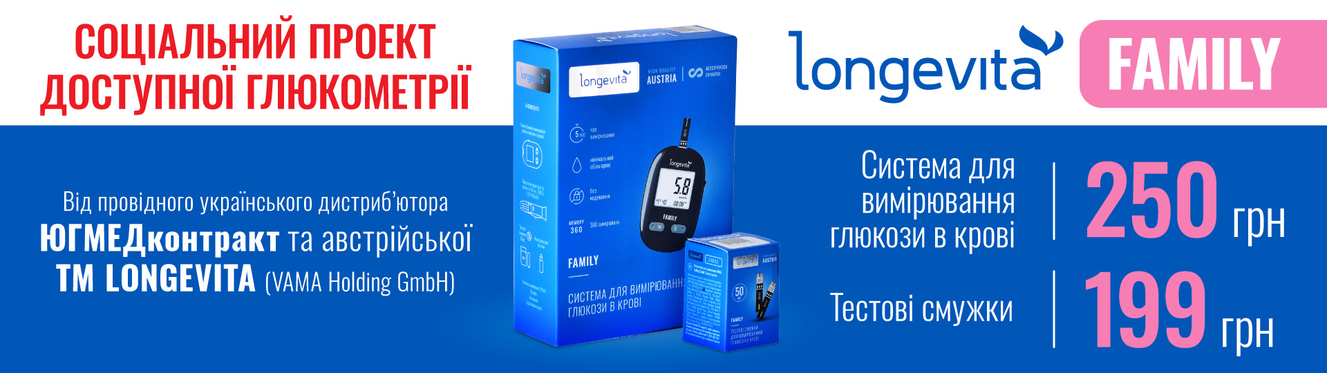 Провідний український дистриб’ютор Юг Контракт та Австрійський бренд медичної техніки Longevita (VAMA Holding GmbH) розпочинають масштабний соціальний проєкт: «Доступна глюкометрія для всієї родини.» Кожен мешканець України може придбати Глюкометр Longevita FAMILY (Австрія) та тест-смужки до нього в магазинах медичної техніки Медтехніка ORTOMEDICA та на інтернет-просторі ortomedica.ua по спеціальній, соціальній ціні: