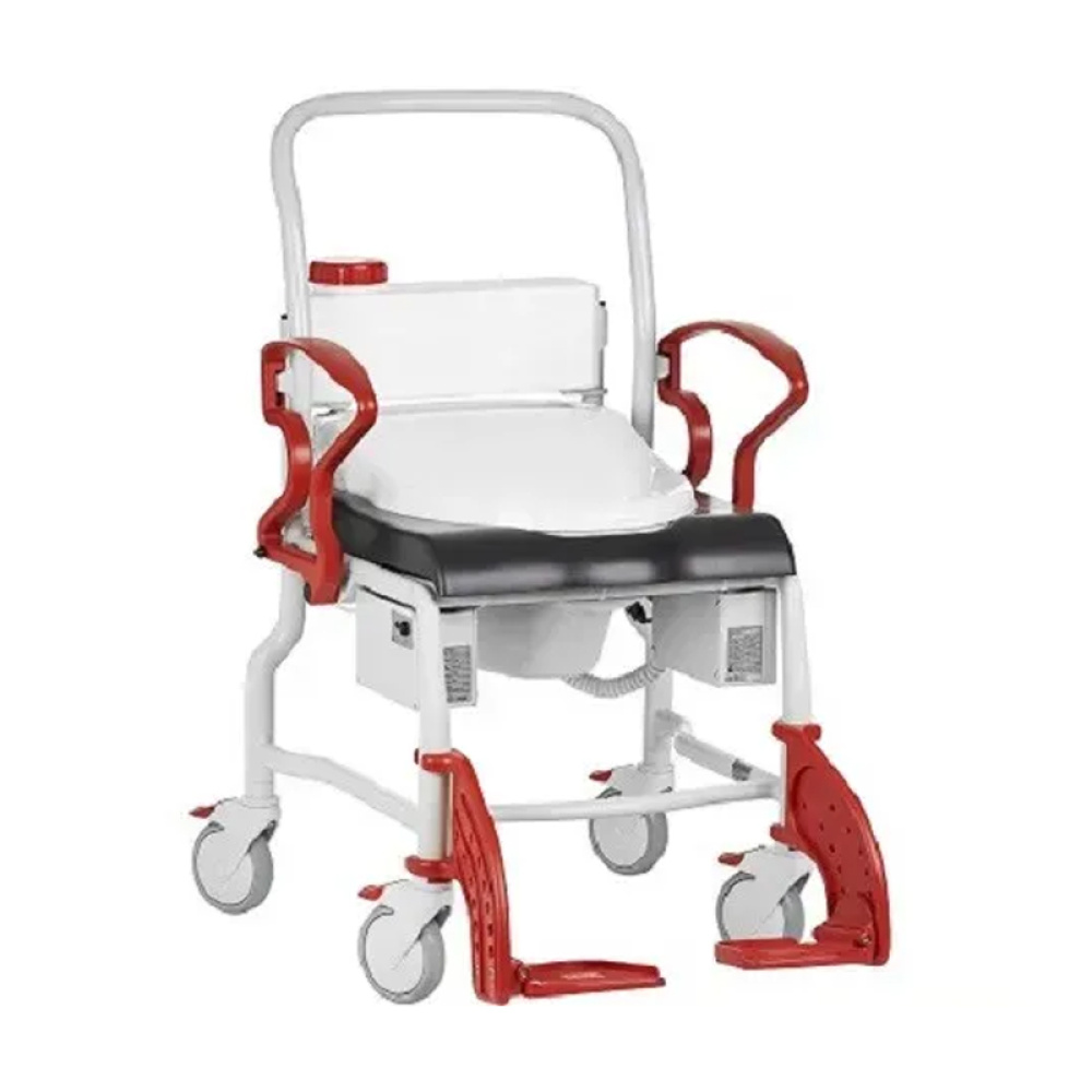 Багатофункціональний стілець DUBAI призначений для спрощення відвідання туалету, як стаціонарного так і в разі, коли санітарна кімната недоступна. Додаткове обладнання PowerWash дозволяє також проведення гігієнічних процедур: миття інтимної зони, водяний масаж для запобігання утворення пролежнів, клізма, сушіння теплим повітрям тощо. Напір, кут нахилу та температура водяного струменя регулюється на панелі керування. Ємність баку для води — 5 літрів. Обладнання налаштовується під конкретного пацієнта індивідуально. Наявність коліс дозволяє переміщувати пацієнта на невеликі відстані в межах приміщення. М’яке поліуретанове сидіння має функцію підігріву. Поворотні підлокітники легко відсуваються, щоб пацієнт міг зручно переміститися з ліжка на стілець самостійно або за допомогою доглядальника. Регульовані підніжки збільшують зручність стільця. Конструкція стільця легко керується, миється й обслуговується. За необхідності виріб можна розібрати для транспортування або зберігання.
