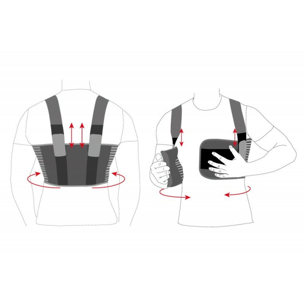 Даний бандаж має анатомічну форму, що дозволяє оптимально розмістити виріб на грудній клітці. Забезпечено наплічними лямками для надійної фіксації, з еластичної тканини, що забезпечує відведення вологи з поверхні тіла.