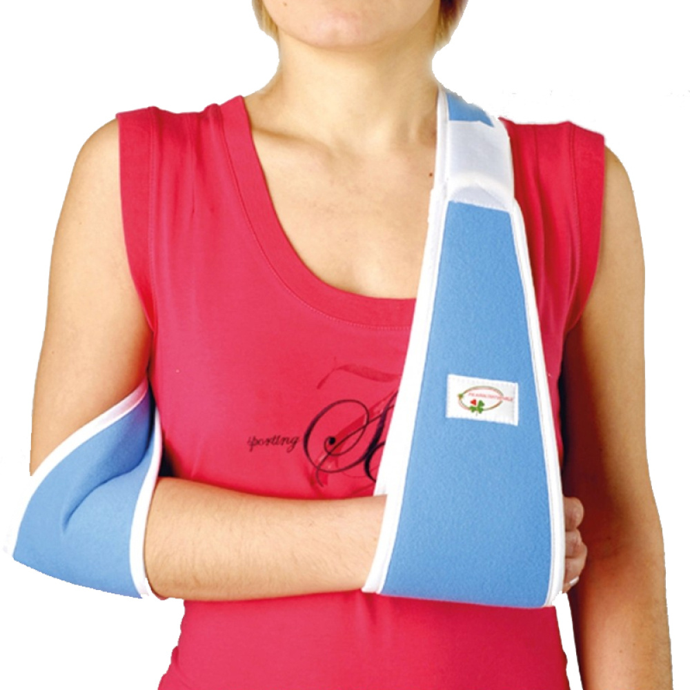 Залежно від моделі (з фіксацією до тулуба або без) надає підтримку руки або підтримку руки фіксуючи її до тулуба.