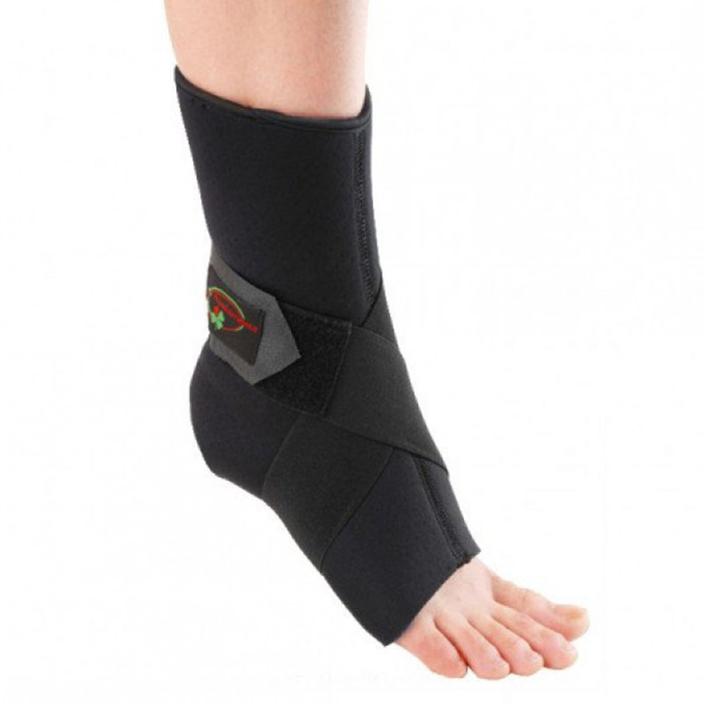 Модель представляє з себе аеропреновий носок з пришитими до нього додатковими восьмиобразними ременями, які обертають суглоб за принципом професійного тейпуванняі ступінь їх затягування регулюється липучками. Аеопреновий бандаж для посиленої стабілізації гомілковостопного суглоба і надійного захисту при заняттях спортом - надійно фіксується і оптимально прилягає до суглобу.