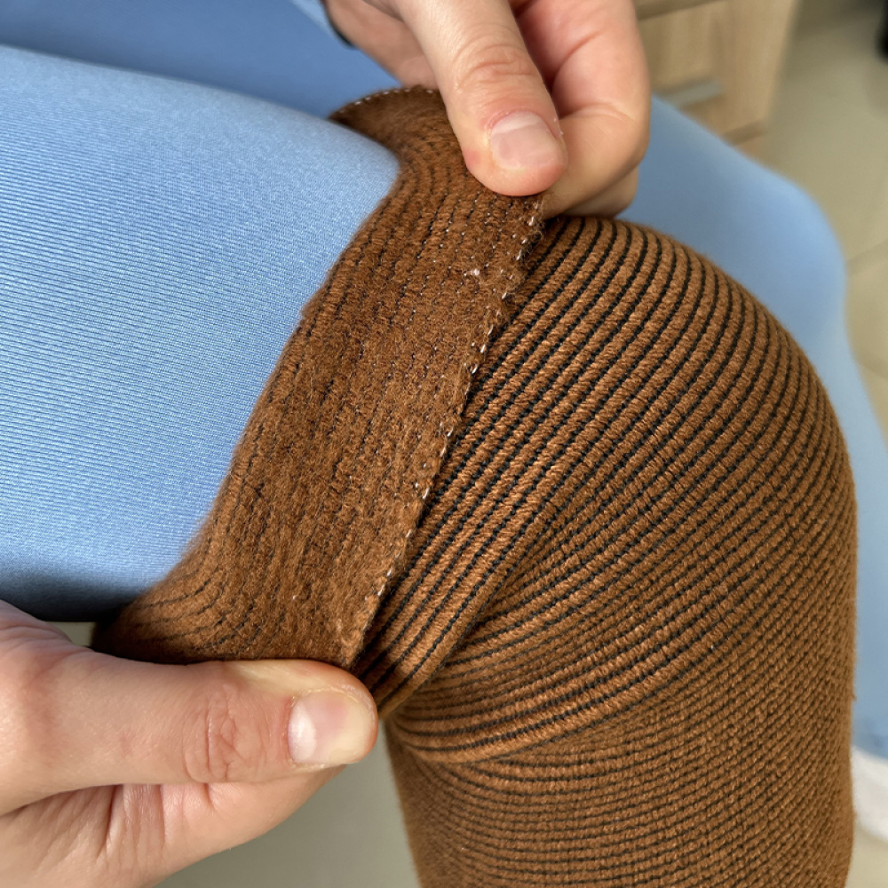 Завдяки цьому способу наколінник щільно прилягає, забезпечує рівномірну компресію та не сповзає під час ходьби чи фізичної активності.