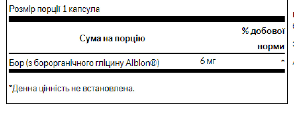 Міцним і здоровим кісткам потрібен бор, але цей мінерал важко засвоювати організмом. Swanson Boron від Albion's® Bororganic Glycine оптимізує всмоктування та біодоступність для забезпечення ефективного прийому добавок. Albion є лідером у виробництві мінералів з високим ступенем засвоєння, виробляючи неперевершені дієтичні мінерали, яким можна довіряти. Кожна капсула містить 6 мг бору.