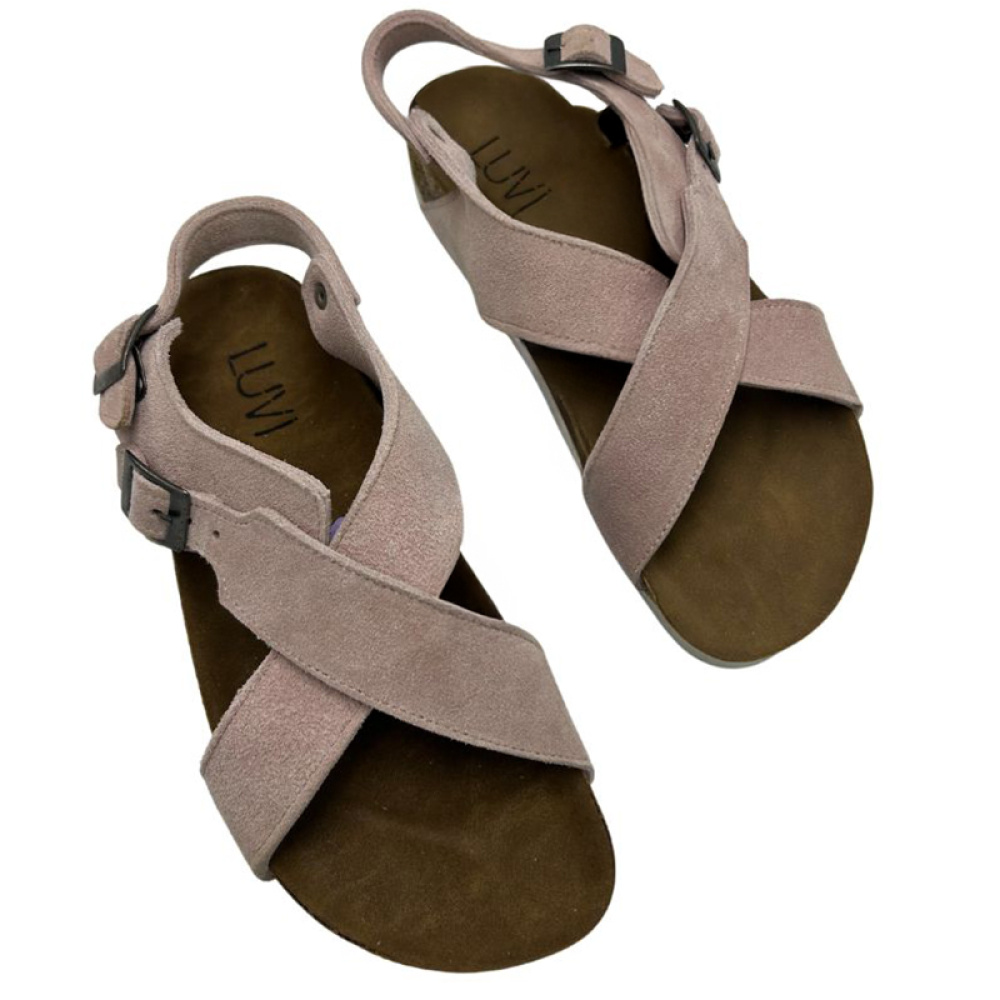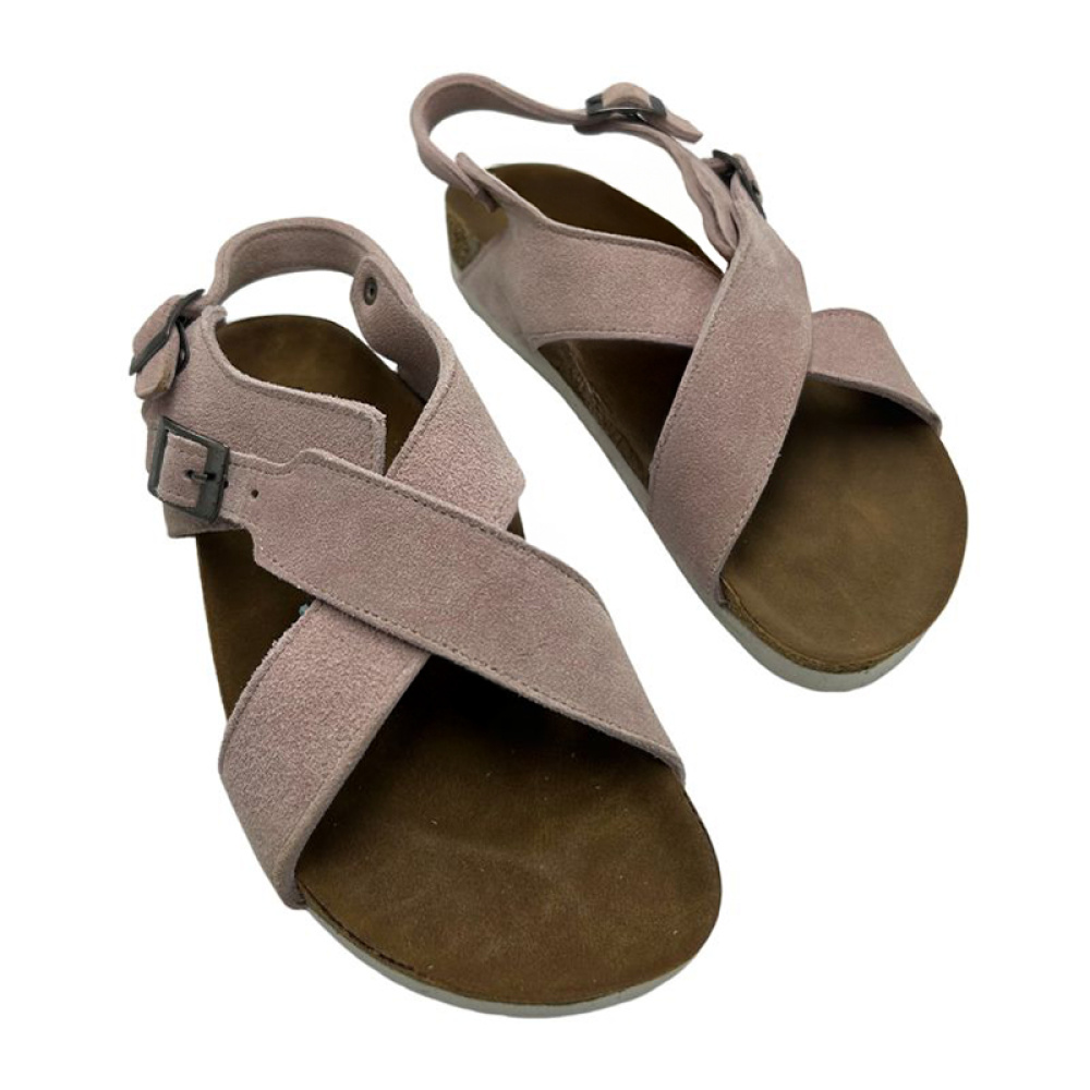 Ці босоніжки поєднують у собі сучасний дизайн та турботу про здоров'я ваших ніг. Виконані із замші ніжного пудрового відтінку, вони надають образу легкість і жіночність. Ремені акуратно фіксують стопу, запобігаючи ковзанню та забезпечуючи стабільність при ходьбі.