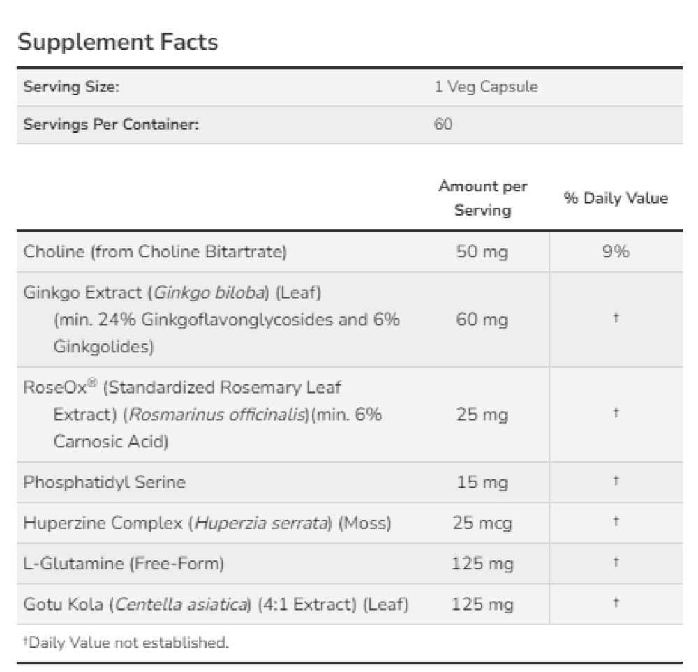 NOW® Brain Elevate™ науково розроблено для підтримки здорових церебральних функцій.* Brain Elevate™ містить гінкго білоба та RoseOx®, два рослинні екстракти, відомі своїми властивостями поглинати вільні радикали.* Цей продукт також містить фосфатидилсерин, глутамін і холін. як найважливіші поживні речовини для мозку для досягнення оптимальних результатів.*