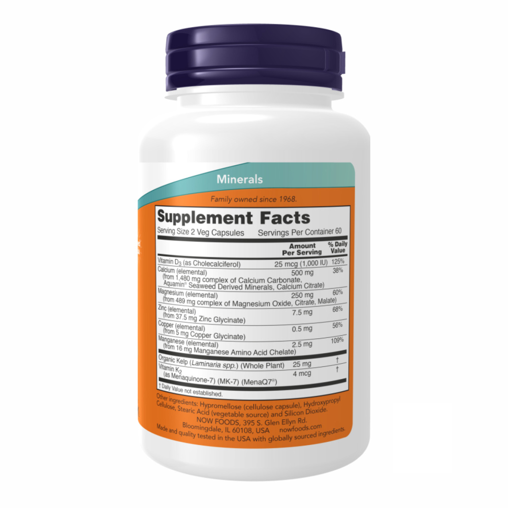 NOW® Cal-Mag Caps містить мінерали, необхідні для здоров’я кісток.* Окрім кальцію та магнію, Cal-Mag Caps забезпечує хелатні, добре засвоювані форми цинку, міді та марганцю, трьох мікроелементів, які, як відомо, підтримують здоровий метаболізм кісток. .* Вітаміни D і K також включені для підтримки метаболізму кальцію.*