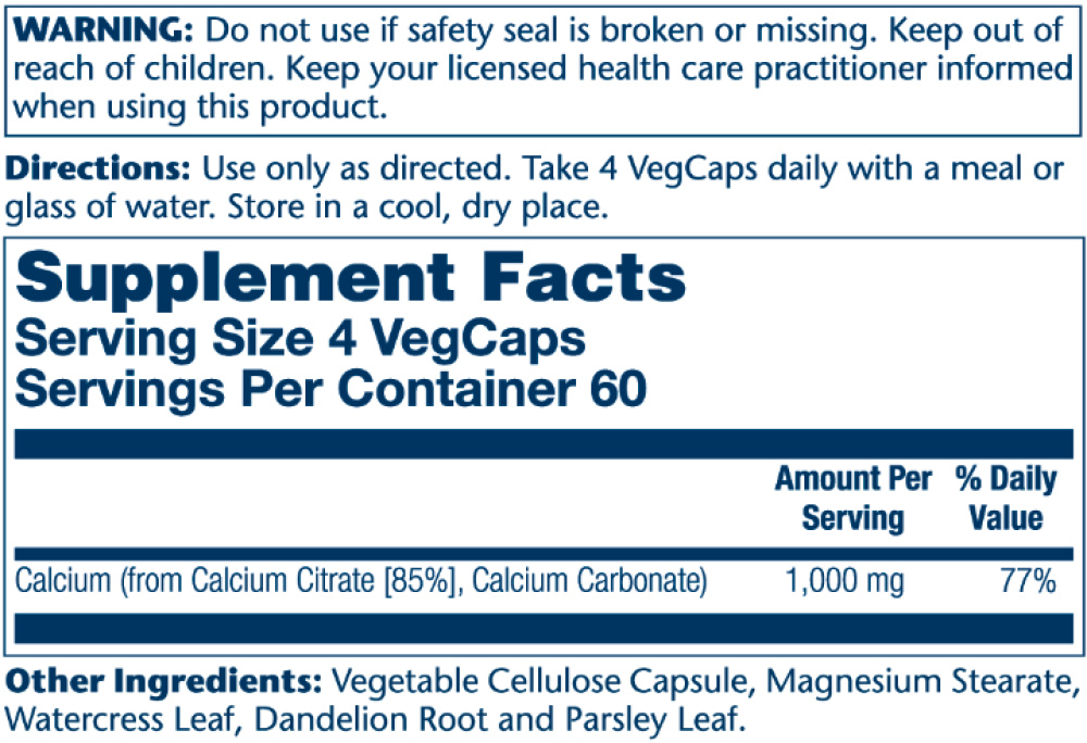 Solaray Calcium Citrate 1000mg - 120 капсул - це дієтична добавка, що містить кальцій у легкозасвоюваній формі цитрату. Кальцій важливий для: