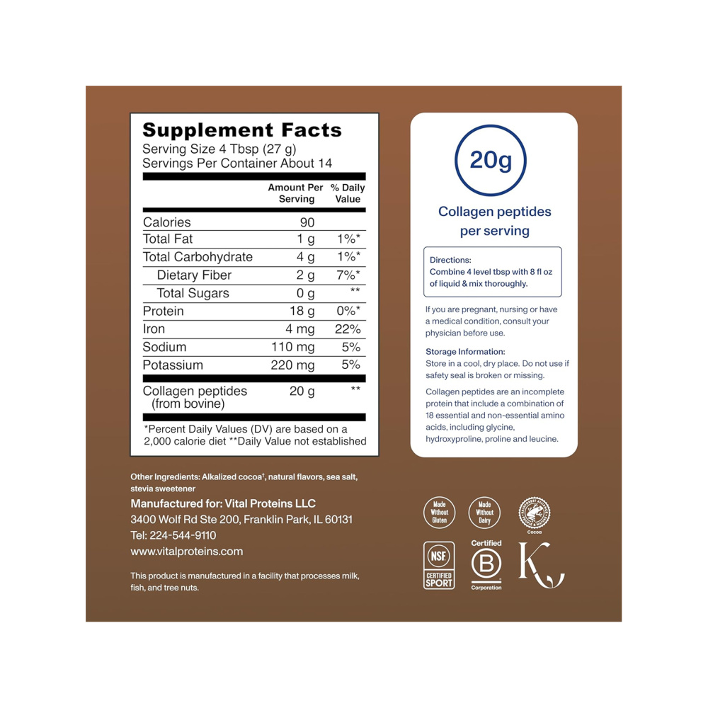 Ми додали какао, що містить сертифікат Rainforest Alliance, до наших пептидів колагену з великої рогатої худоби вільного вигулу й трав’яного відгодовування, щоб надати чудового солодкого смаку вашій воді, каві, смузі, стравам тощо!