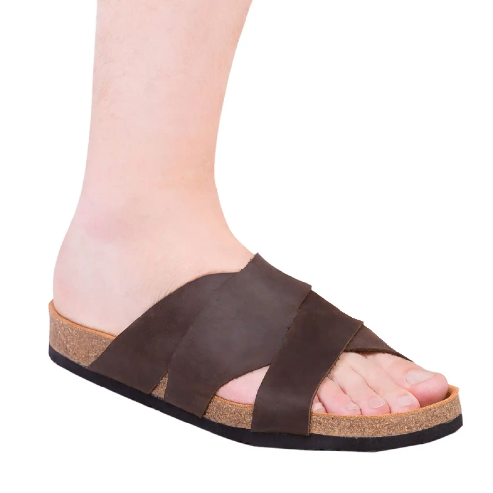 Коркова міцна підошва, роздільник пальців, підтримка склепіння стопи та спеціально розроблема зона п`яти, роблять дану пару взуття незамінною для боротьби з проблемами плоскостопості. Синій або коричневий колір в асортименті.
