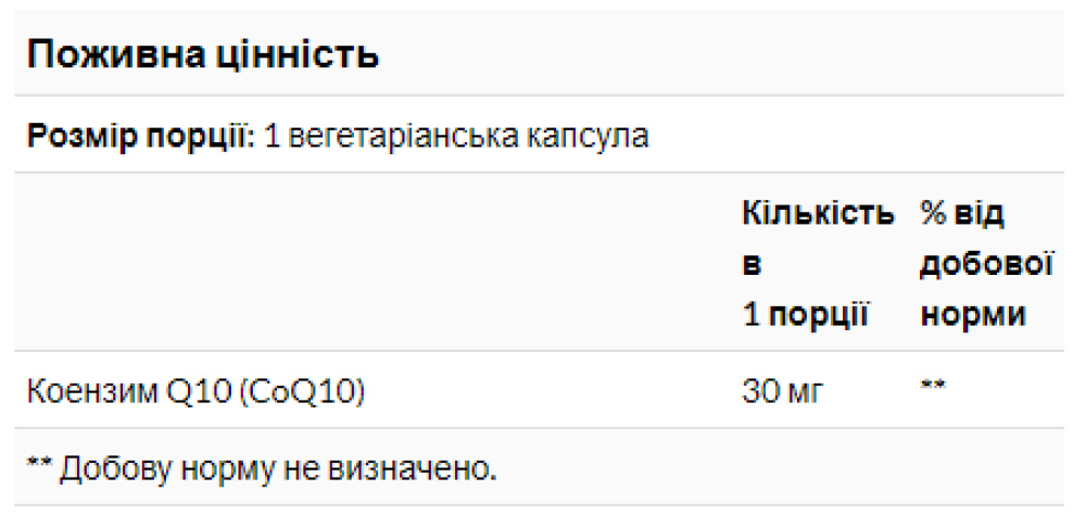 Коензим Q10 (CoQ10) є вітаміноподібною сполукою, яка відіграє основну роль у виробленні клітинної енергії. Коензим Q10 міститься у всьому організмі, але найбільша його кількість концентрується в серці, печінці та нирках. З віком його вироблення зменшується. Коензим Q10 видаляє вільні радикали з клітинних мембран та кровоносних судин. Багаторічні наукові дослідження показали, що коензим Q10 підтримує здоров'я серцево-судинної системи.