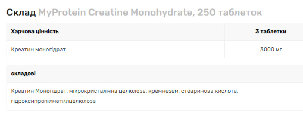 MyVitamins Creatine Monohydrate – таблетки з креатину моногідратом високої якості. Таблетки зручного розміру, легко ковтаються.