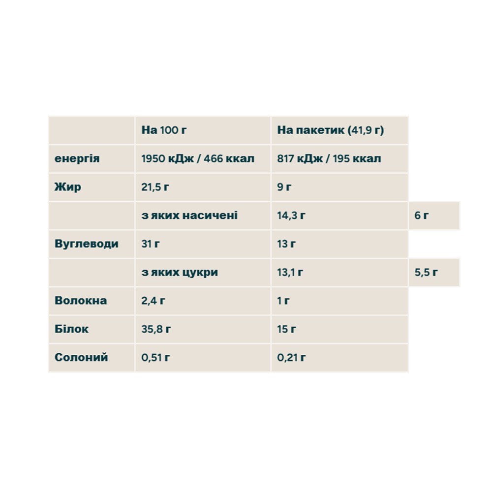 Містить на 60% менше цукру та на 20% менше жиру, ніж аналоги з супермаркетів, тож насолоджуйтесь багатими на білок ласощами, не зруйнувавши своїх зусиль.