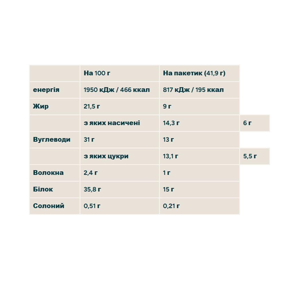 Містить на 60% менше цукру та на 20% менше жиру, ніж аналоги з супермаркетів, тож насолоджуйтесь багатими на білок ласощами, не зруйнувавши своїх зусиль.