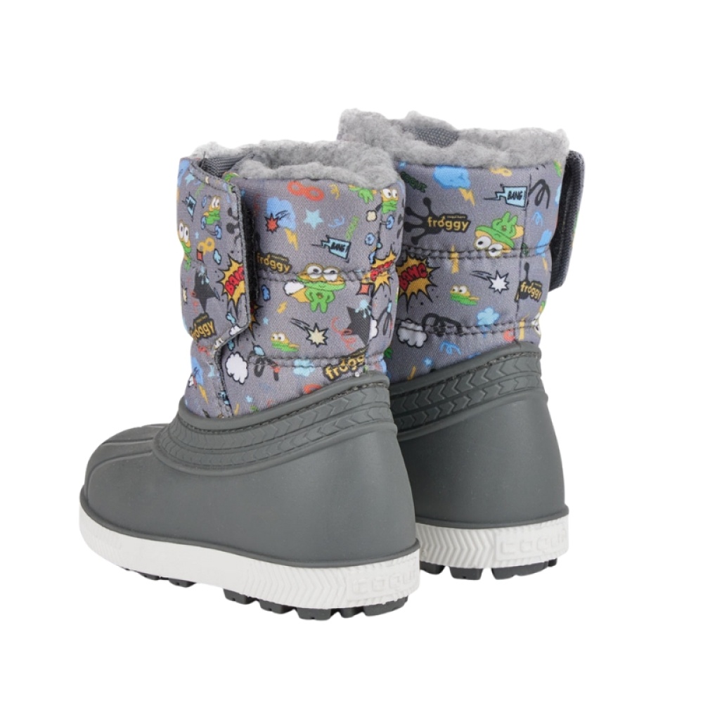 Завдяки липучці сноубутси адаптуються до розмірів стопи. Якісна неслизька підошва. Дизайн Coqui.
