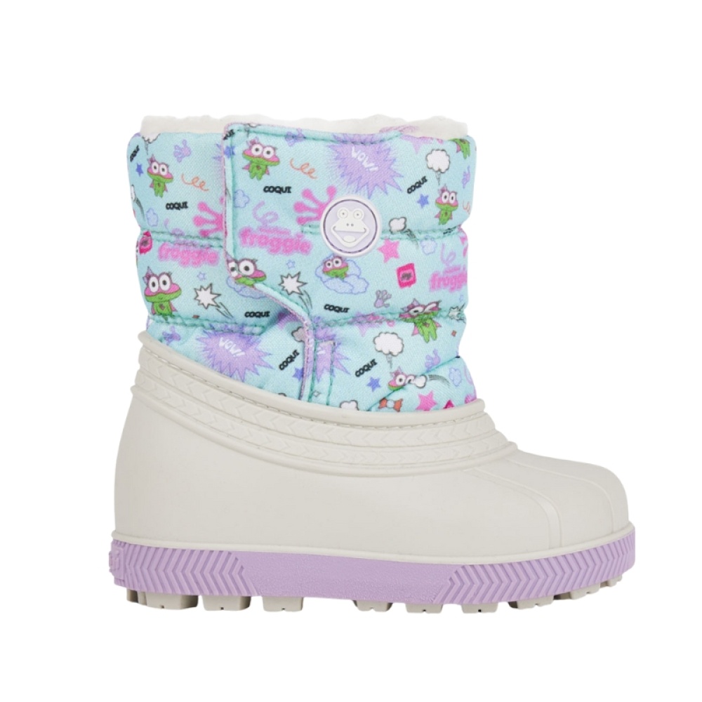 Завдяки липучці сноубутси адаптуються до розмірів стопи. Якісна неслизька підошва. Дизайн Coqui.