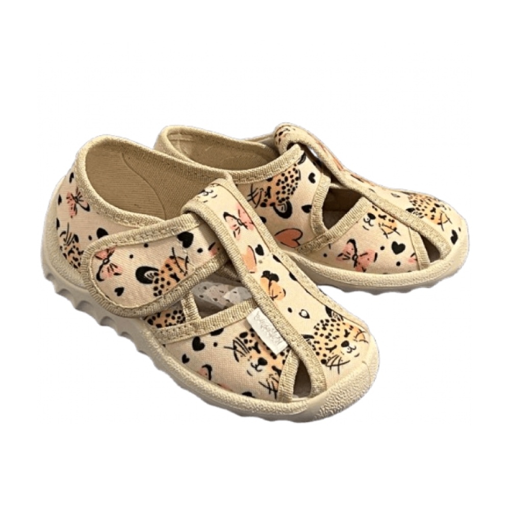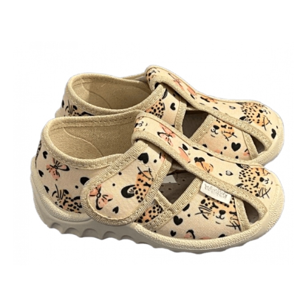 Дитячі капці текстильні Waldi Маша 360-761 бежеві, леопард