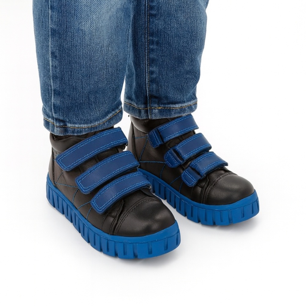 Широкий носок черевика Ortomedica 250-06 не обмежує руху пальців, жорсткий задник добре фіксує п'яту, захищаючи її від викривлення, а міцна антиковзаюча підошва мінімізує травматизм і забезпечує відмінну амортизацію при ходьбі. Анатомічні черевики призначені для використання в весняно-осінній період, завдяки флісового утеплювача. Фіксується взуття за допомогою трьох липучок, тому маленька дитина без проблем зможе взутися самостійно в дитячому саду.