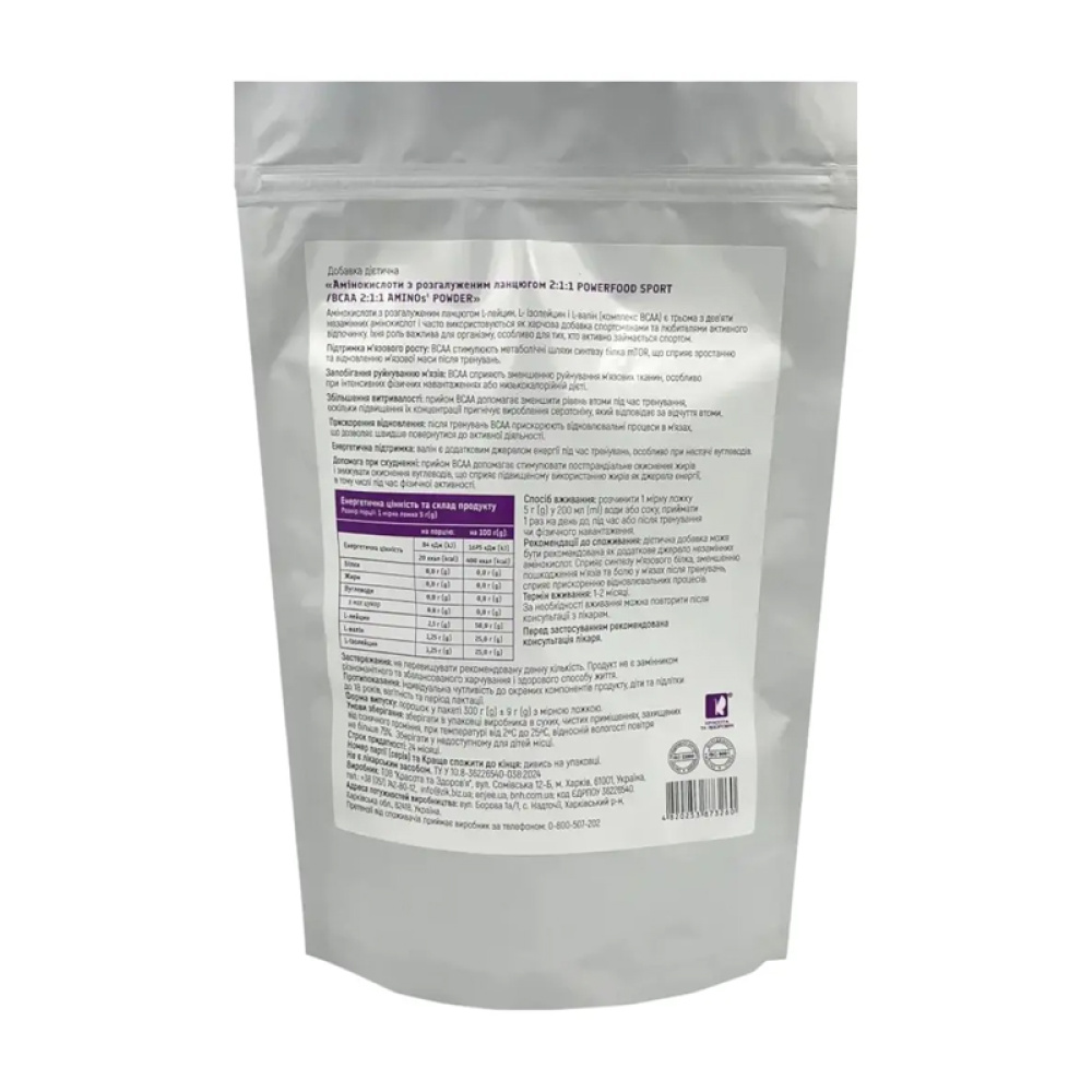 - Співвідношення амінокислот 2:1:1 для оптимального балансу лейцину, ізолейцину та валіну.