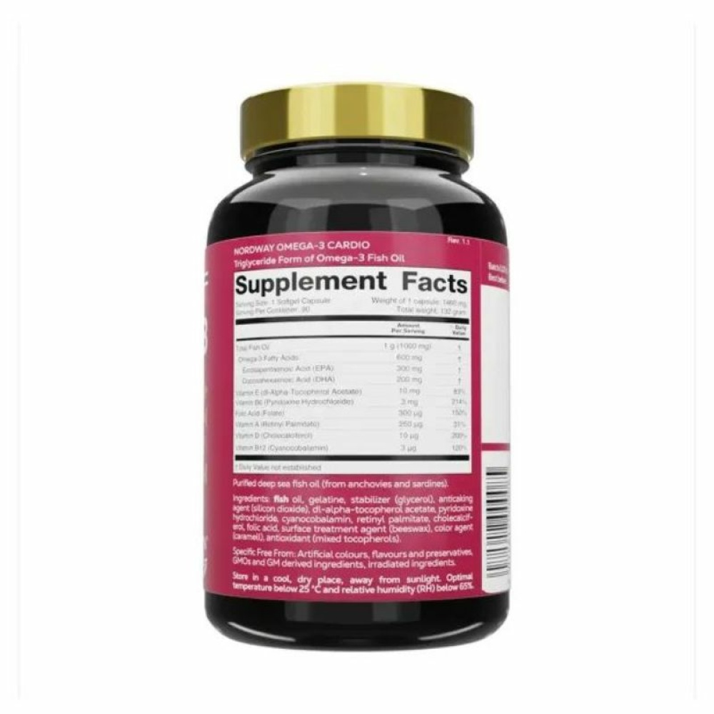 NORDWAY OMEGA-3 CARDIO 1000 мг – це високоякісна дієтична добавка, розроблена для підтримки здоров'я серцево-судинної системи. Сприяє запобіганню відкладання холестерину на стінках судин, утворення атеросклеротичних бляшок, знижує ризик утворення тромбів в судинах та підтримує артеріальний тиск на нормальному рівні.