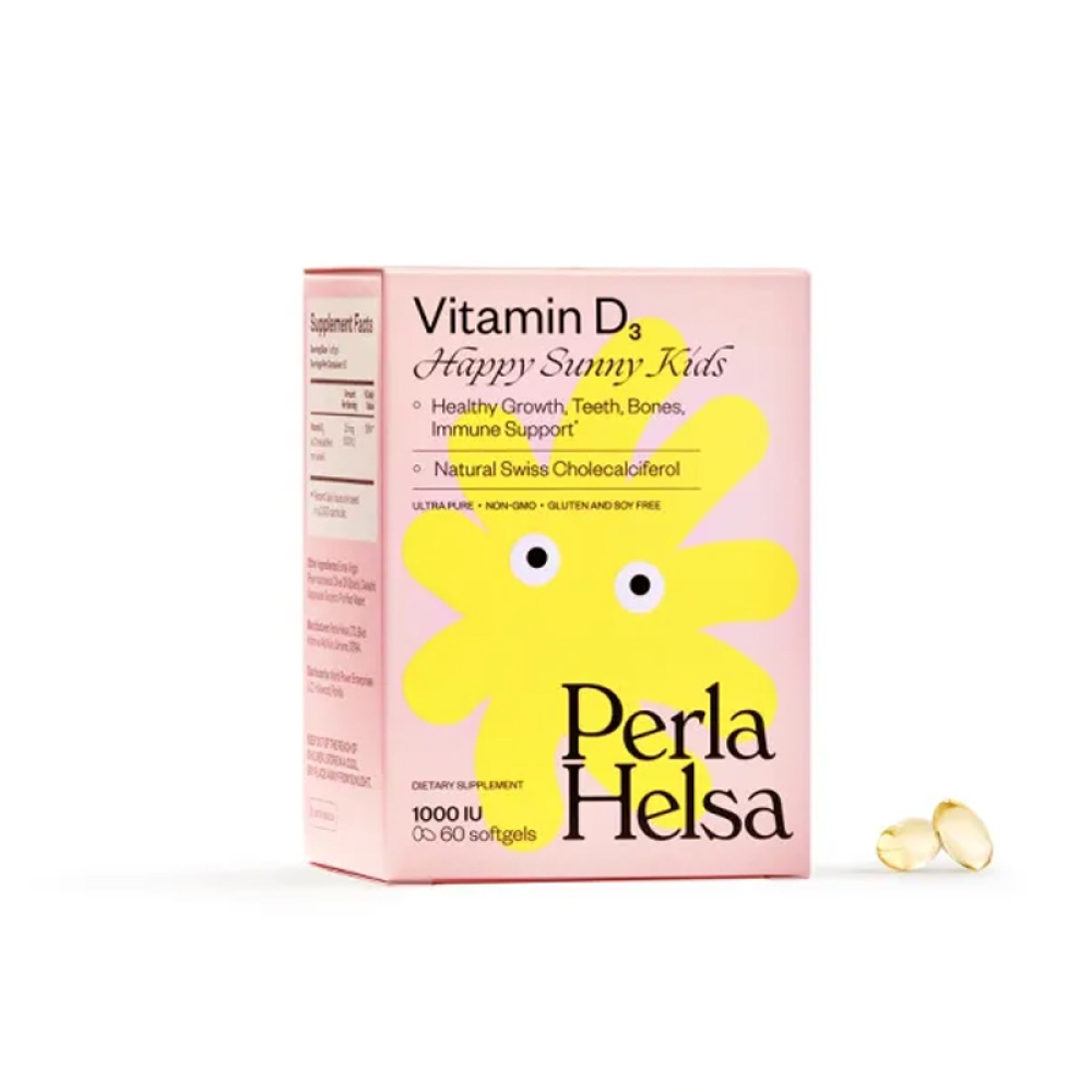 Perla Helsa Вітамін KIDS D3 1000 IU — дієтична добавка для дітей у капсулах, яка допомагає підтримувати нормальний ріст і розвиток, міцність кісток і зубів, а також імунну систему.