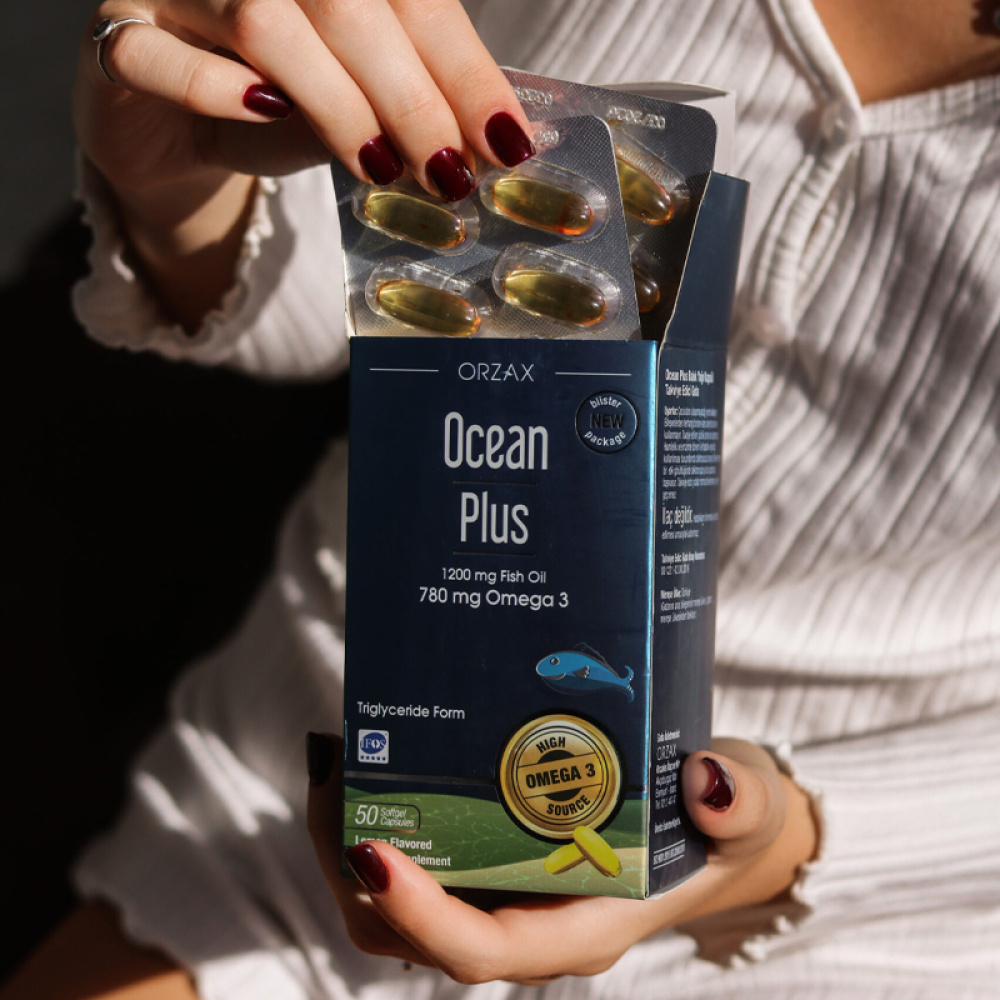 Риб’ячий жир Ocean Plus 1200 мг містить 780 мг Омега-3, включаючи 384 мг ЕПК та ДГК – дві ключові жирні кислоти Омега-3, що сприяють підтримці та збереженню здоров’я серцево-судинної та нервової систем.