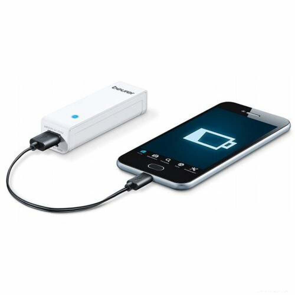 Зовнішній акумулятор потужністю 3,6 Вт дозволить працювати електрогрілки Beurer HK 47 в перебігу двох годин в автономному режимі. Через знімний блок живлення можна заряджати смартфон через USB кабель. Виріб ідеально підходить для застосування на вулиці.