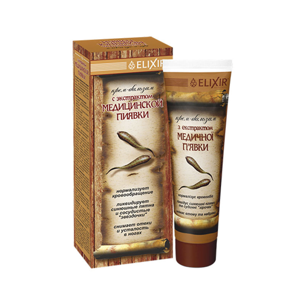 Останнім часом гірудотерапія широко застосовується в нашій країні. У секреті слинних залоз медичної п'явки виявлений цілий ряд (більше 15) біологічно активних речовин унікального цілющого впливу. До них відносяться гірудин, дестабілаза, оргелаза, антістазін, декорзін, калин, Еглін і деякі інші сполуки того ж порядку. Екстракт медичної п'явки має протизапальну, бактеріостатичну, імуностимулюючу, антиатеросклеротичну, протиішемічну та лімфогінну дію. Крем-бальзам ефективно допомагає в ліквідації синюшних плям, судинних зірочок, знімає втому в ногах, набряки, сприяє нормалізації кровообігу при варикозному захворюванні вен.