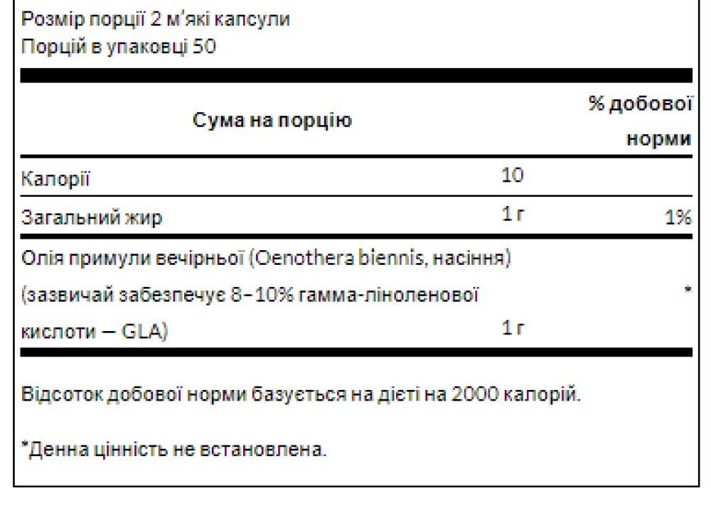 Жінки всього світу цінують олію вечірньої примули (EPO). Swanson EPO містить високий рівень гамма-ліноленової кислоти, важливої ​​незамінної жирної кислоти для підтримки протягом усього щомісячного циклу жінки, і допомагає підтримувати здоров'я шкіри. Кожна м'яка капсула містить 500 мг нашої ексклюзивної OmegaTru EPO.