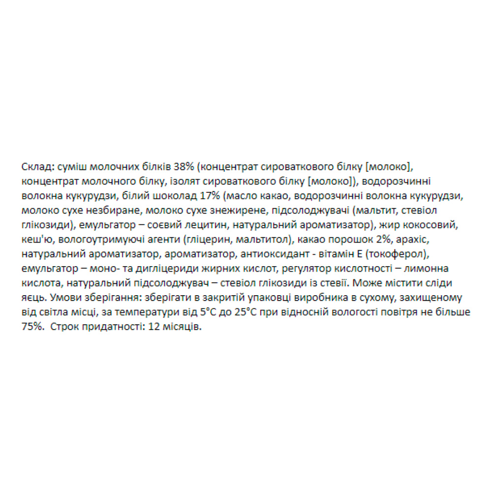 високий вміст протеїну - 20 грамів білка на кожен 60-грамовий батончик!