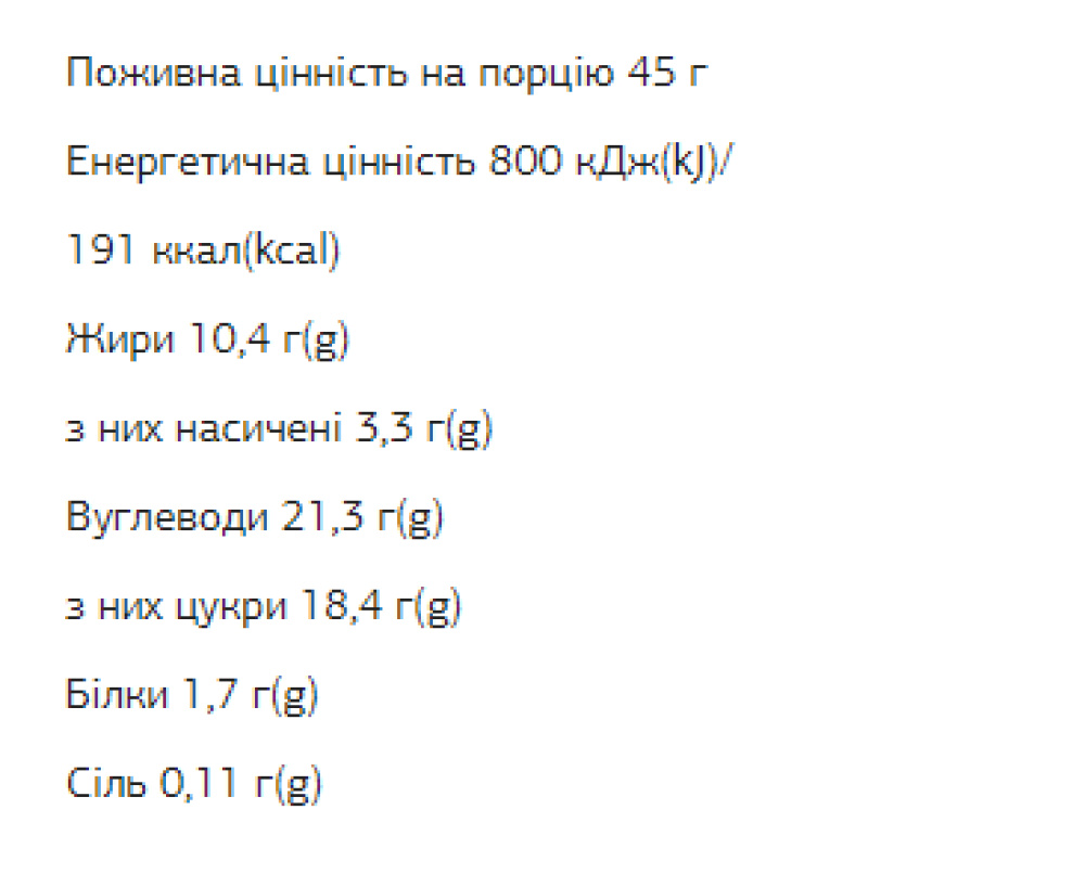 Склад: фініки, ядра горіхів фундука (24 %), шоколадна глазур (11%) (терте какао, підсолоджувач мальтит, какао масло, какао порошок зі зниженим вмістом жиру, емульгатор лецитин, натуральний ароматизатор ваніль), рожева гімалайська сіль (2,2%).