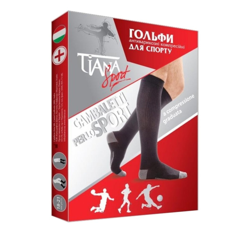 Гольфи антиварикозні компресійні для спорту Tiana 760 Skin Logo, 18-21 мм рт.ст., чорно-сірі