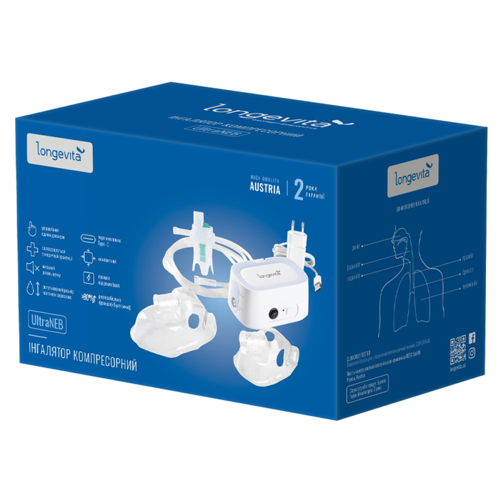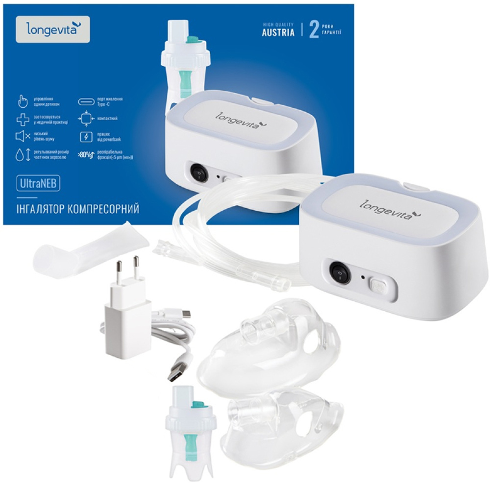 Longevita піклується про своїх клієнтів, тому комплектує свої інгалятори якісними та зручними аксесуарами. Компресорний інгалятор дає змогу використовувати практично будь-які види лікарських препаратів, що робить його незамінним помічником для всієї родини.