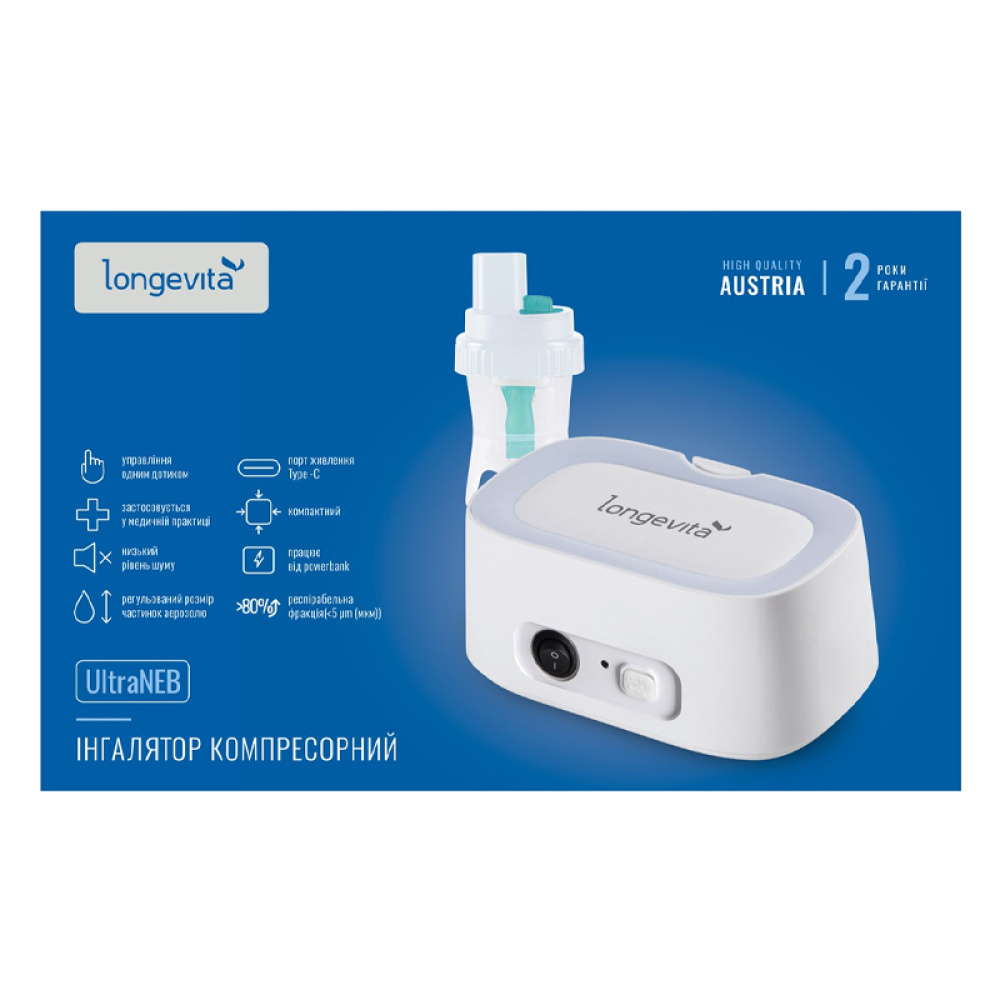 Longevita UltraNEB –компресорний інгалятор зроблений із якісних матеріалів, легкий у використанні. Завдяки сучасним технологічним рішенням має зручний компактний розмір та оптимальні технічні характеристики – все це робить його зручним у використанні не тільки в домашніх умовах а також в лікувальних закладах.