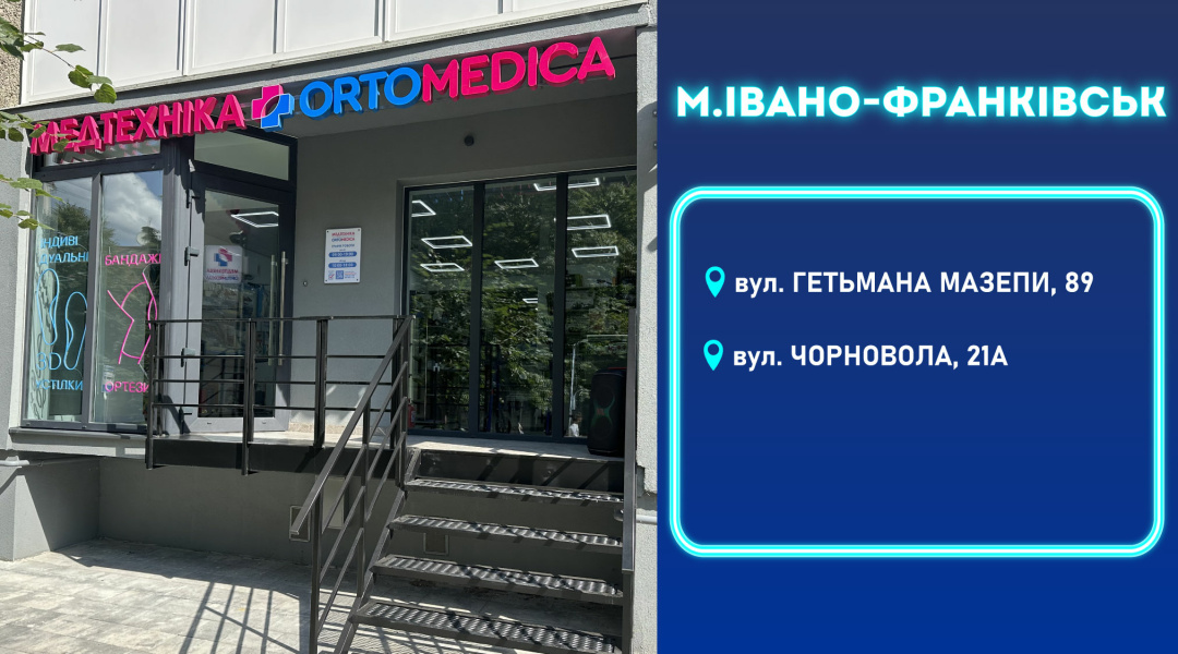 Наші магазини медтехніки Ортомедіка в Івано-Франківську та інших містах є лідерами з продажу медичної продукції. У каталозі компанії кожен покупець знайде саме те, що йому необхідно. Продукція салону підійде для всіх категорій населення, порадує своєю якістю та зносостійкістю. Для того, щоб купити виріб або продукцію, що сподобалась, достатньо залишити заявку на сайті компанії або прийти в будь-яке з відділень салону і особисто підібрати все необхідне, а наші менеджери завжди в цьому допоможуть. Придбання спеціального медичного обладнання на сьогоднішній день не є розкішшю, а є необхідністю для комфортного життя та впевненості у своєму самопочутті у найближчому майбутньому. Ми працюємо безпосередньо з фірмами-виробниками, тому пропонуємо своїм покупцям найновішу продукцію, що відповідає всім нормам та вимогам, а також конкурентну вартість на медичному ринку товарів. Періодично товари з усіх категорій потрапляють під акцію, у такий час є можливість придбати товар, що цікавить, за ще більш вигідною ціною. Прийдіть у будь-яке з відділень нашого салону і переконайтеся особисто у високому професіоналізмі співробітників та широкому асортименті продукції. Чекаємо на вас у таких містах; Київ, Дніпро, Нікополь, Кривий Ріг, Харків, Одеса та багатьох інших на території України.