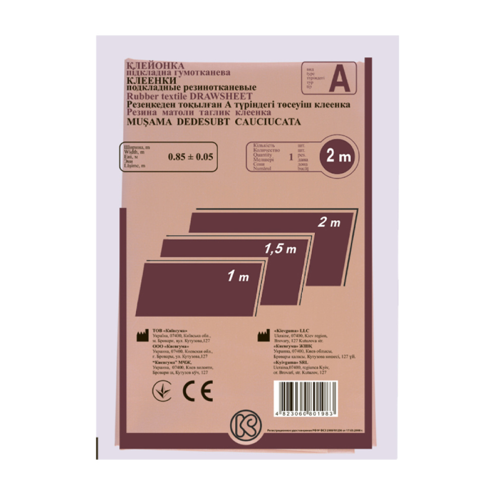 Клейонку підкладну гумотканеву призначено для санітарно-гігієнічної мети як підкладний непроникний матеріал у медицині та побуті. Виготовлено на основі бавовняних тканин.