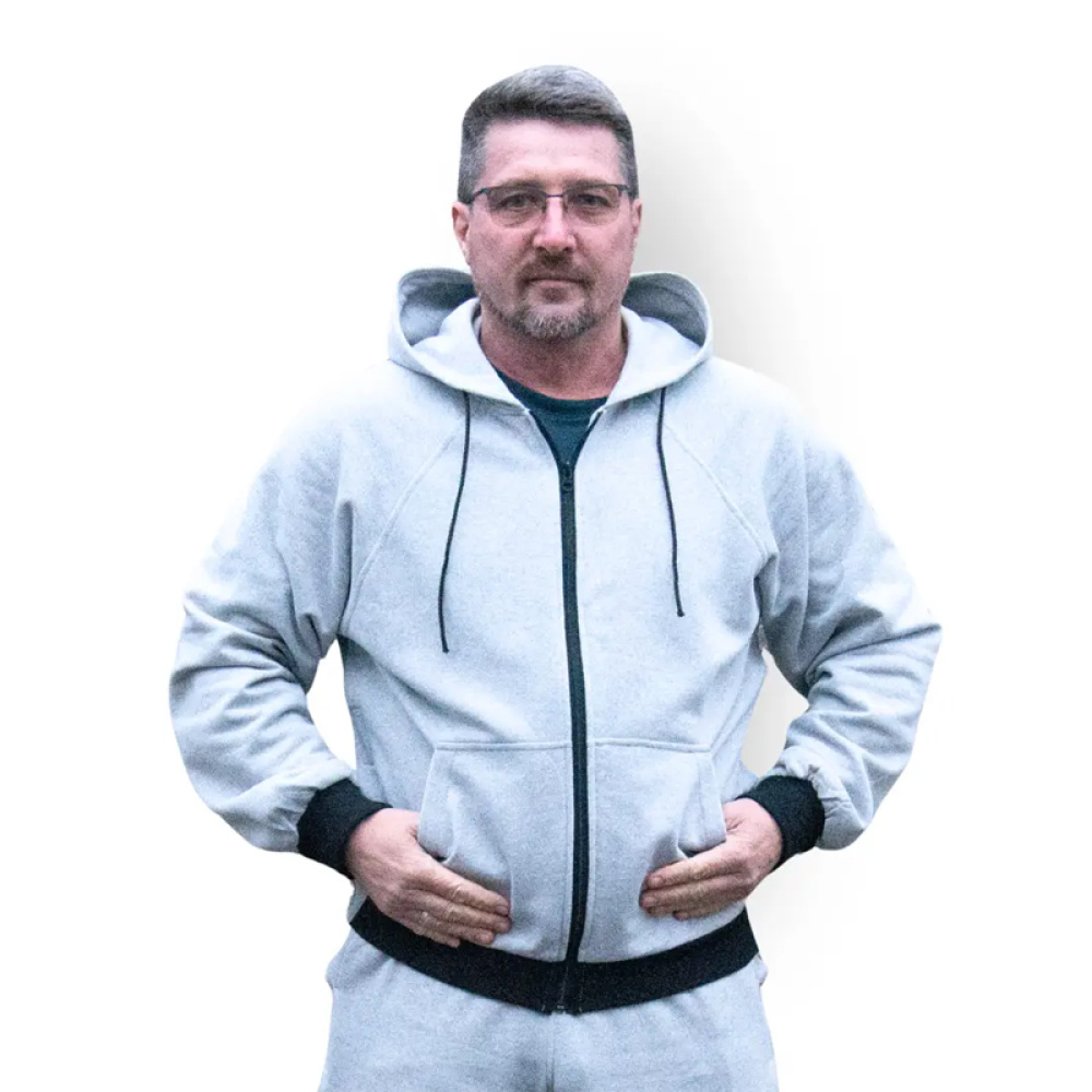 Тепла адаптивна кофта з начісом, створена для зручного одягання при обмеженій рухливості, після травм та під час реабілітації. Передбачені застібки-липучки для комфортного переодягання та повнорозмірна блискавка.