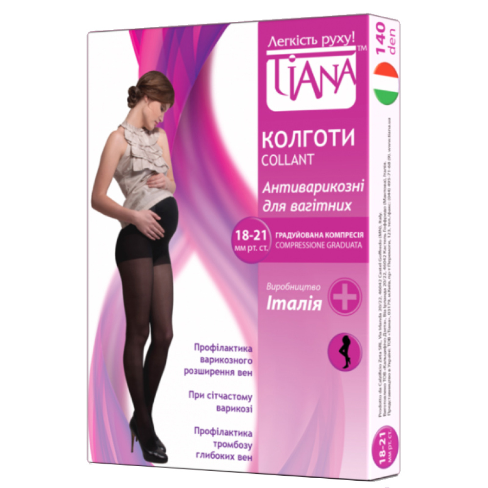 Спеціальна вставка росте разом з животиком мами і зовсім його не здавлює. Колготки необхідно носити протягом всієї вагітності і в післяпологовий період протягом 6-8 тижнів. Антиварикозні колготки TiANA для вагітних допомагають впоратися з підвищеним ризиком варикозного розширення вен - гормональним ефектом вагітності.