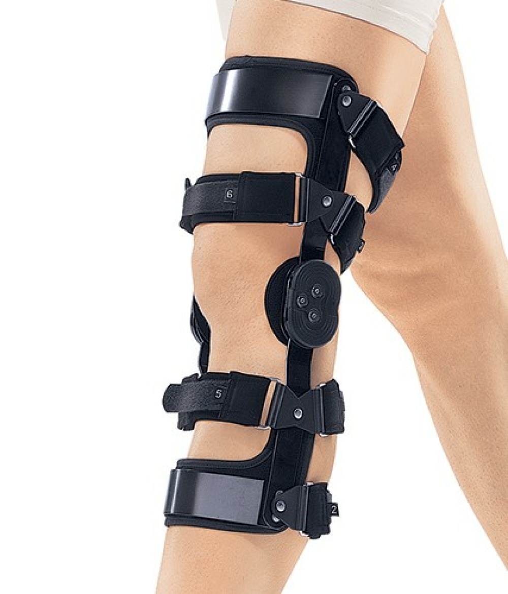- Поліцентричні шарніри ортезу забезпечують відповідність нормальним рухам у колінному суглобі