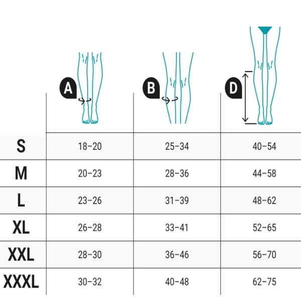 Підібрати необхідний розмір та колір компресійних гольфів VENOTEKS 1C102 дуже просто – нижче представлена ручна таблиця: