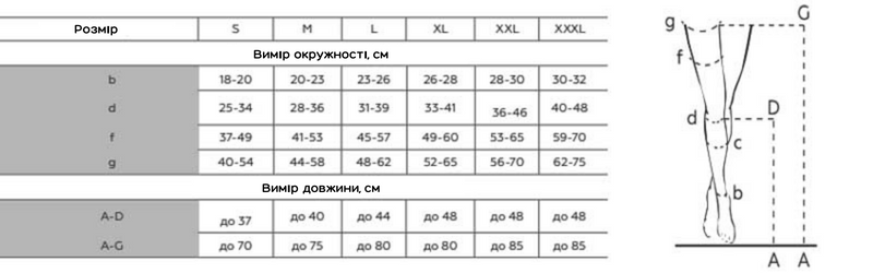 Гольфи мають 2 клас компресії: 23-32 мм рт. ст.