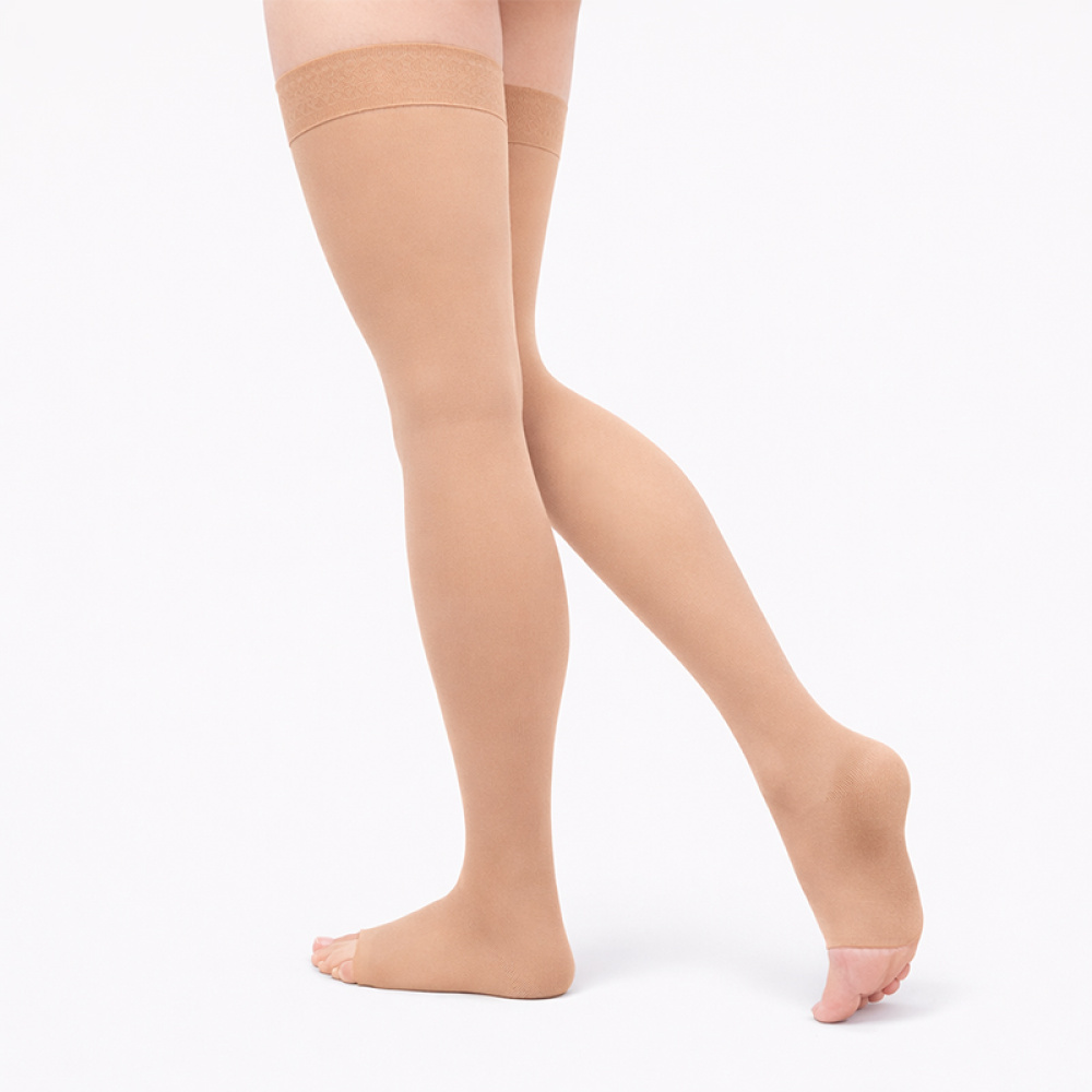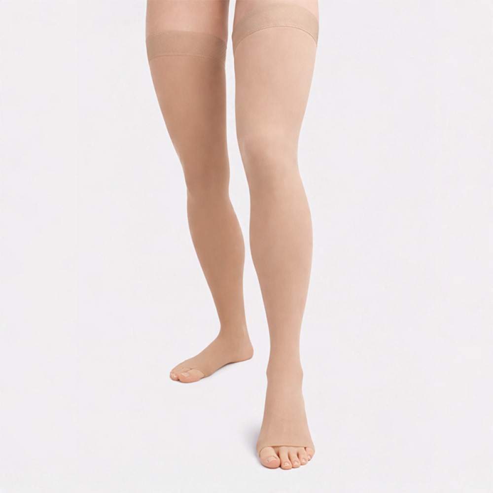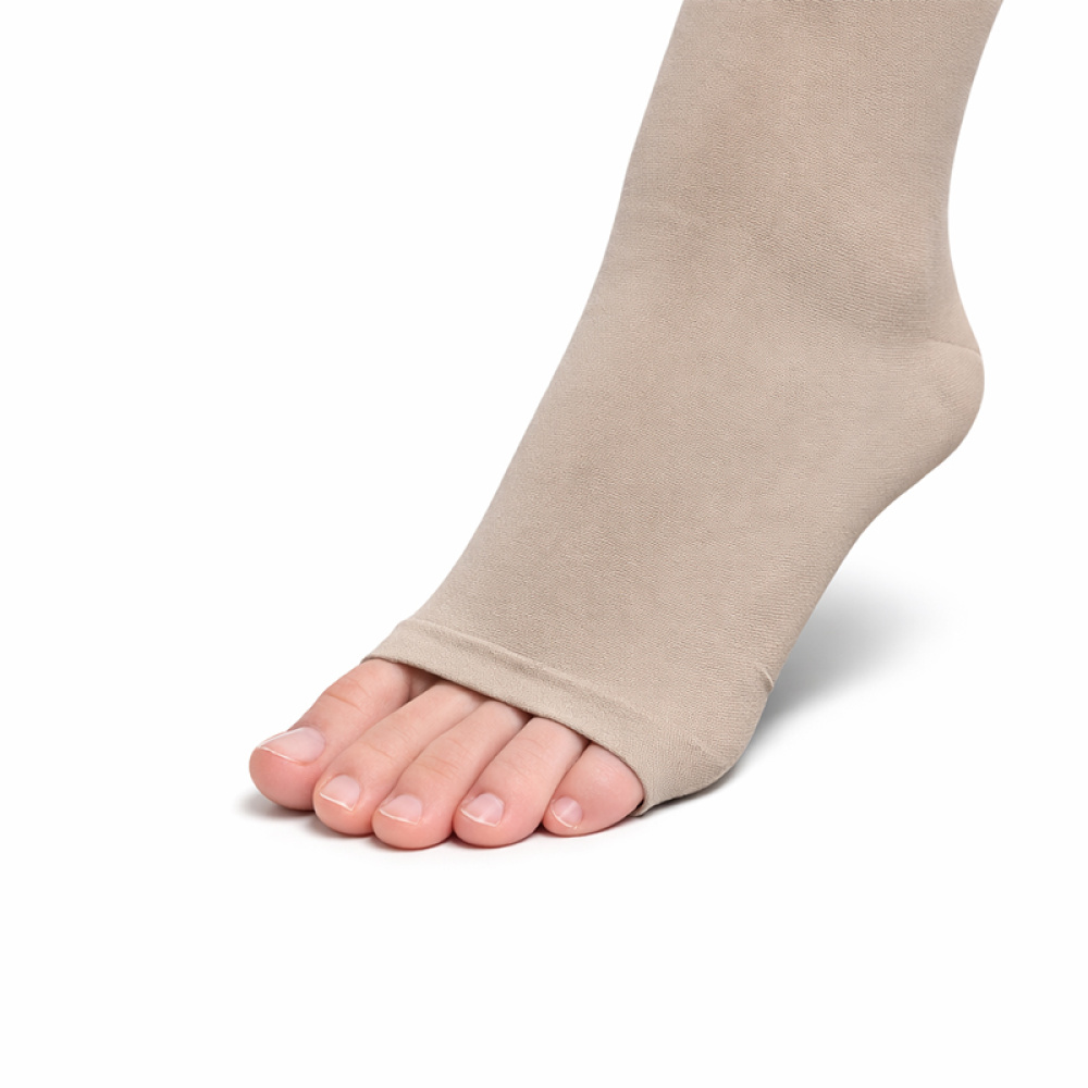 Компресійні панчохи 2 клас (23-32 mmHg) Aurafix AV-108 з відкритим носком, бежеві