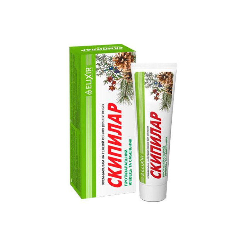 Крем-гель «Скіпілар» з ялівцем та сабельником надає протизапальну і знеболювальну дію, відновлює рухливість суглобів, поліпшує кровообіг і прискорює обмін речовин. Оригінальний склад крем-гелю, забезпечує його швидке проникнення і високу концентрацію в самому центрі болю і запалення. Шабельник болотний - сприяє оновленню всіх ослаблених клітин організму. Масло ялівця розширює кровоносні судини, тим самим, покращуючи кровообіг в області суглоба. Крім того, має протизапальний і м'яким знеболюючий ефект.