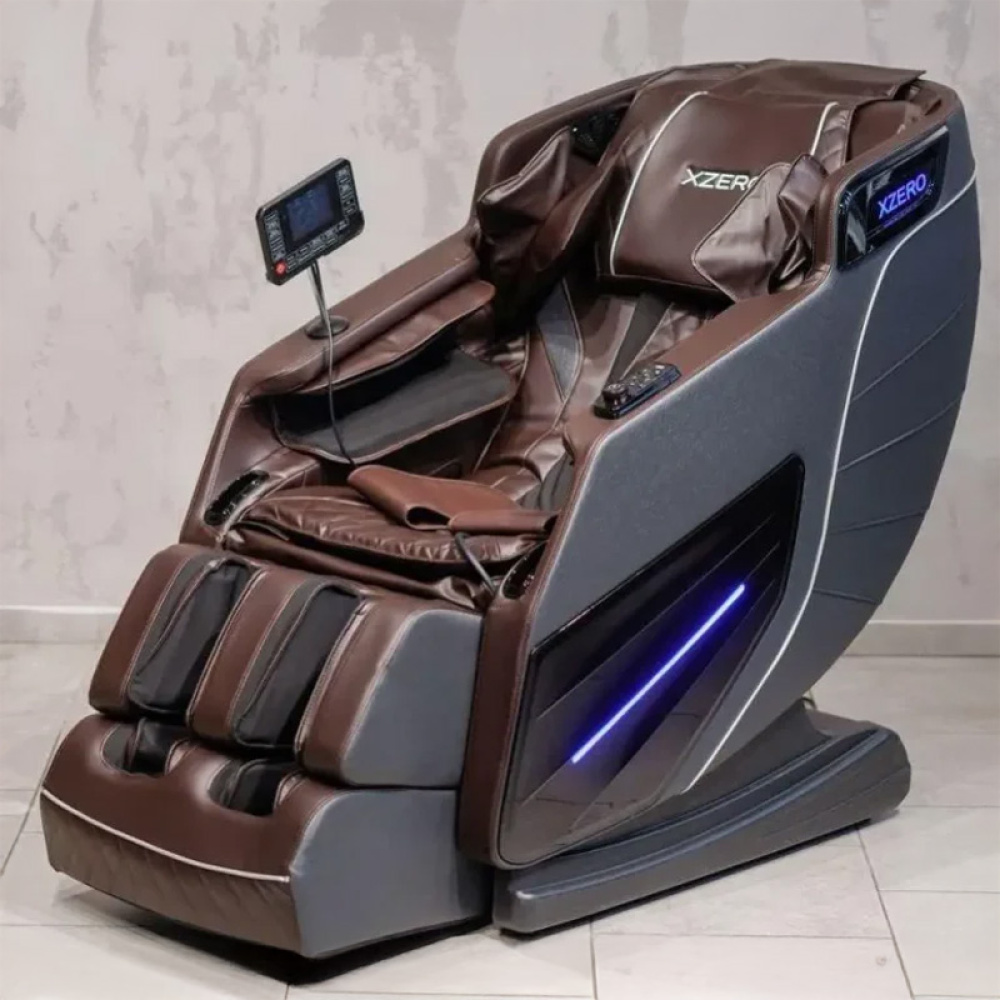XZERO Y18 — багатофункціональне масажне крісло з SL-подібною роликовою кареткою, компресійними AirBag-подушками та підігрівом для щоденного відновлення вдома. Колір оббивки: коричневий.