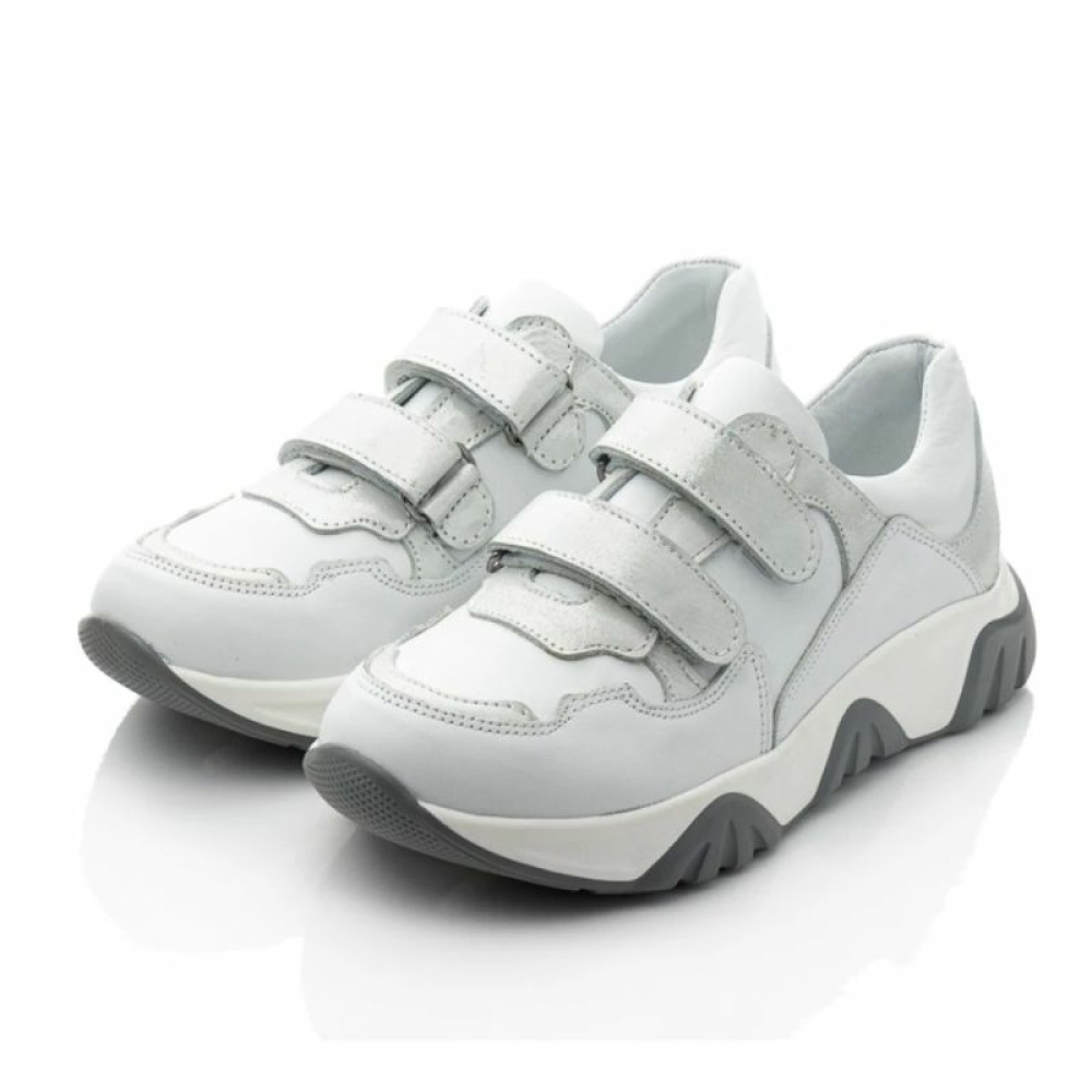 Модель виконана в білому кольорі з сірими вставками, що надає взуттю універсального стилю.