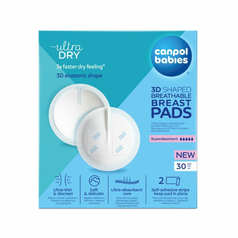 Лактаційні прокладки Canpol babies - ультраабсорбуючі прокладки для грудей Canpol babies забезпечують захист в 3 рази швидше, дає відчуття сухості та свіжості вдень та вночі. Вони дуже тонкі, завдяки чому непомітні під білизною та одягом.