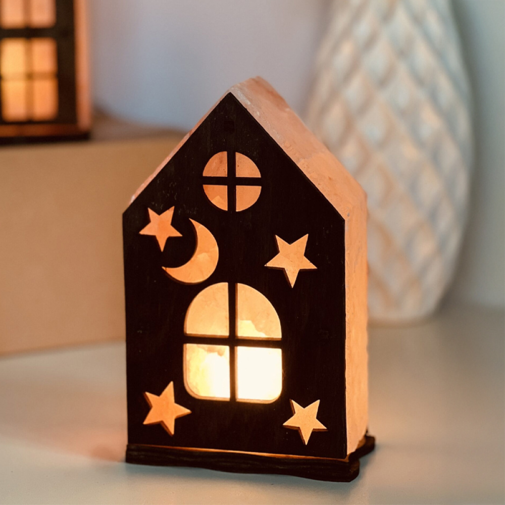 Соляна лампа у формі будиночка створює приємну домашню атмосферу та м’яке тепле освітлення. Модель добре підходить для використання як нічник або декоративний світильник у будь-якій кімнаті.