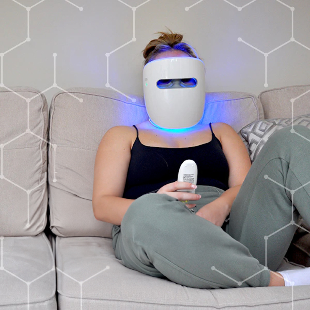 Маска використовує синє, червоне та ближнє інфрачервоне (NIR) світло для покращення стану шкіри та надання їй сяяння.